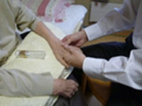 タクティールケアタクティールとは、ラテン語の「タクティリス(Taktilis)」に由来する言葉で、「触れる」という意味があります。その意味が示すように、手を使って10分間程度、相手の背中や手足を「押す」のではなく、やわらかく包み込むように触れるのがタクティールケアです。心地よさや安心感、痛みの軽減等が必要なときの支援として行っています。